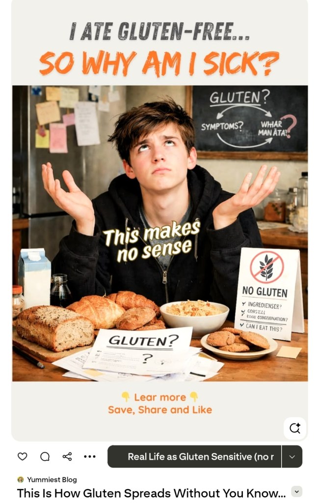 Living gluten-free, one question mark at a time. On Pinterest I’m sharing what I find, what I avoid, and everything in between. You’re not aloneđź’™ My focus is on increasing understanding of gluten intolerance, wheat starch sensitivity and the risks of cross-contamination. Gluten traps and symptoms, yes but food joy must be without compromise anyway. No recipes, just real life! Come, navigate a gluten-free life with me! Forced to keep a gluten and wheat starch free diet, due to gluten sensitivity or NCGS (Non-Celiac Gluten Sensitivy) is a must, not a choice.